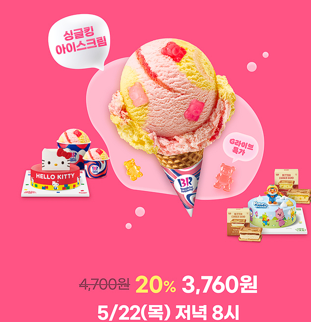 배스킨라빈스 다양한 제품을 할인 판매하네요.