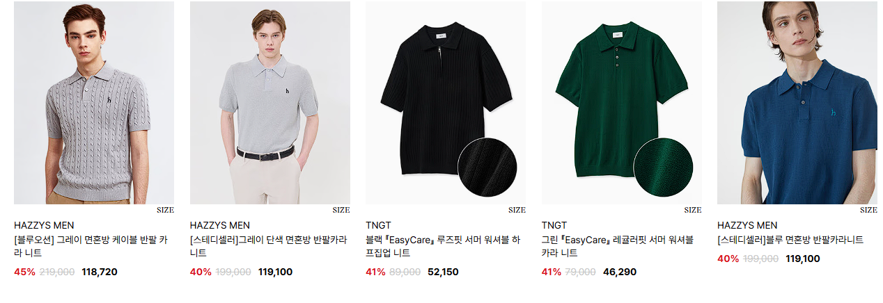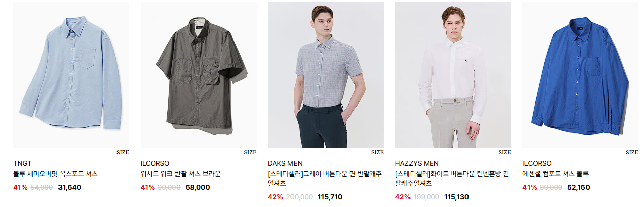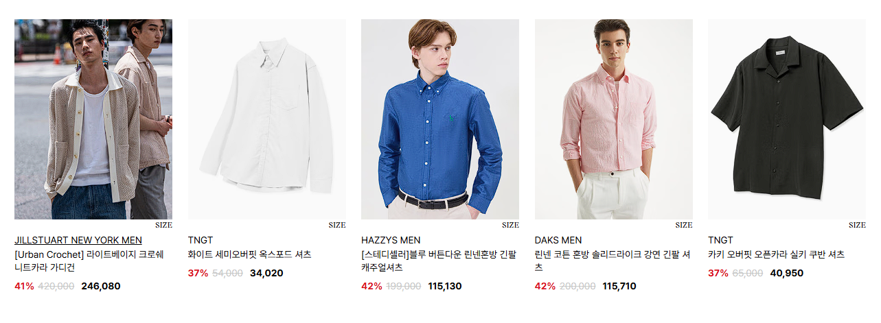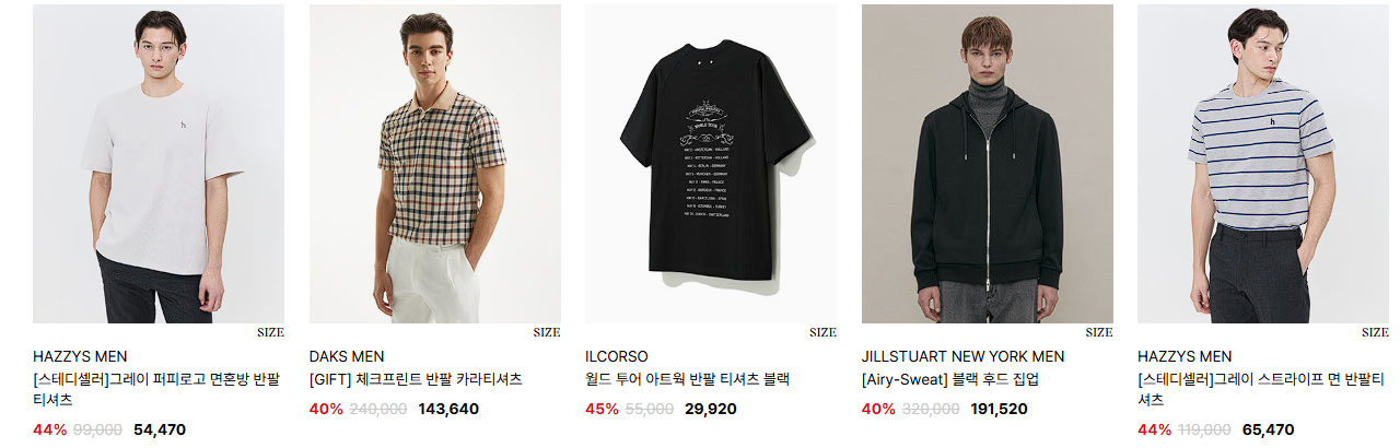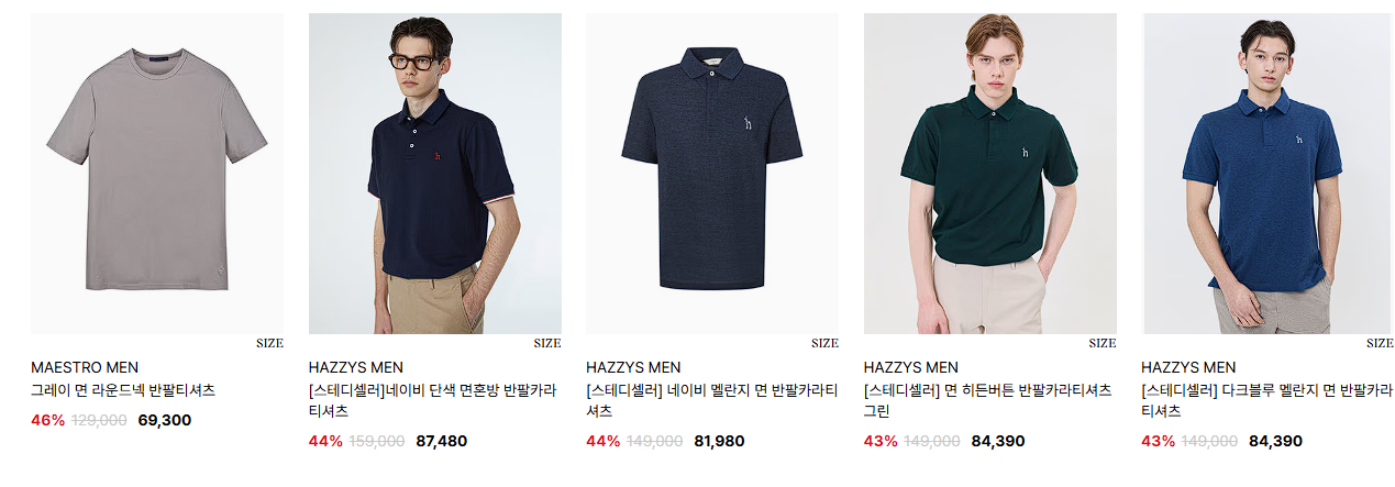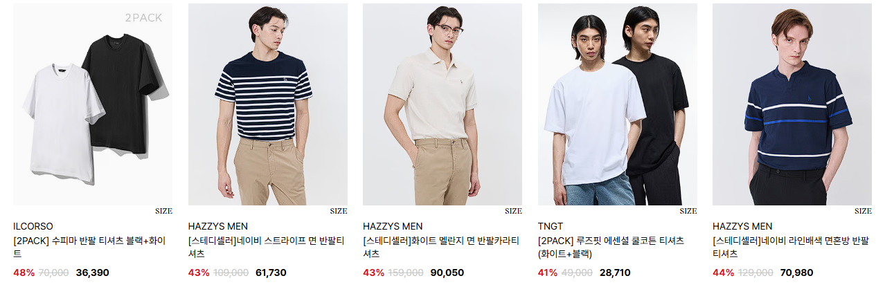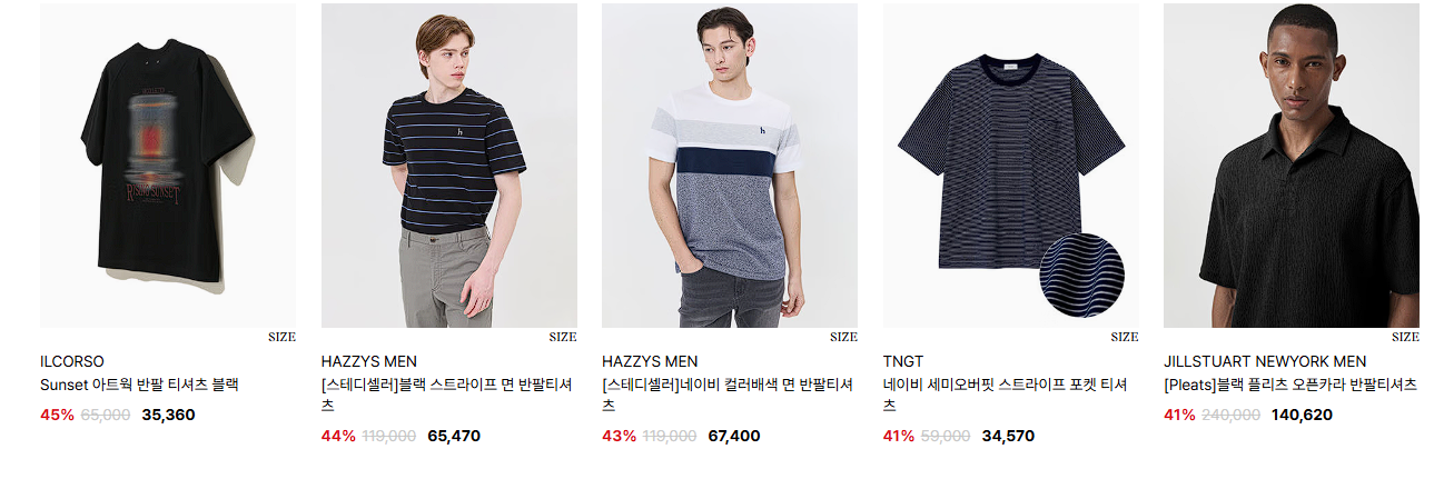할인 품목 : 티셔츠, 셔츠 등