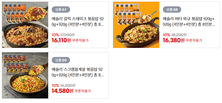 할인 품목 : 통새우 볶음밥, 잡채 볶음밥 등