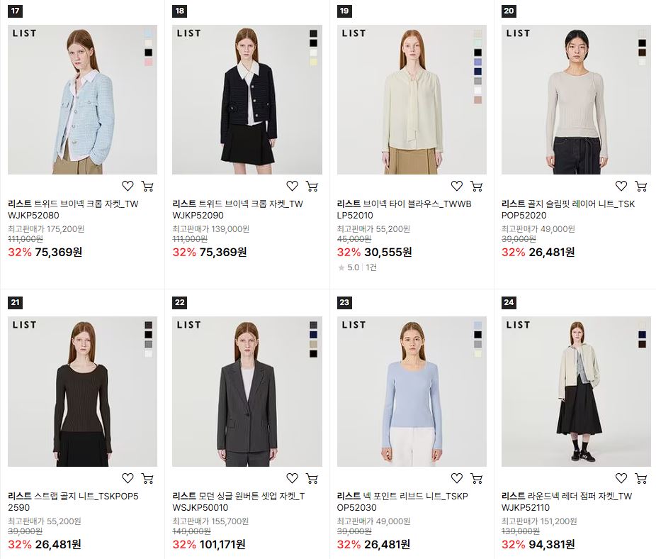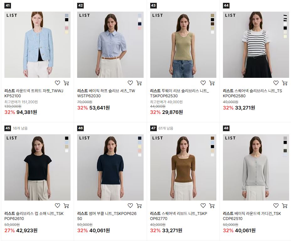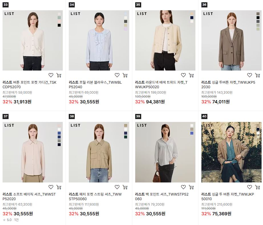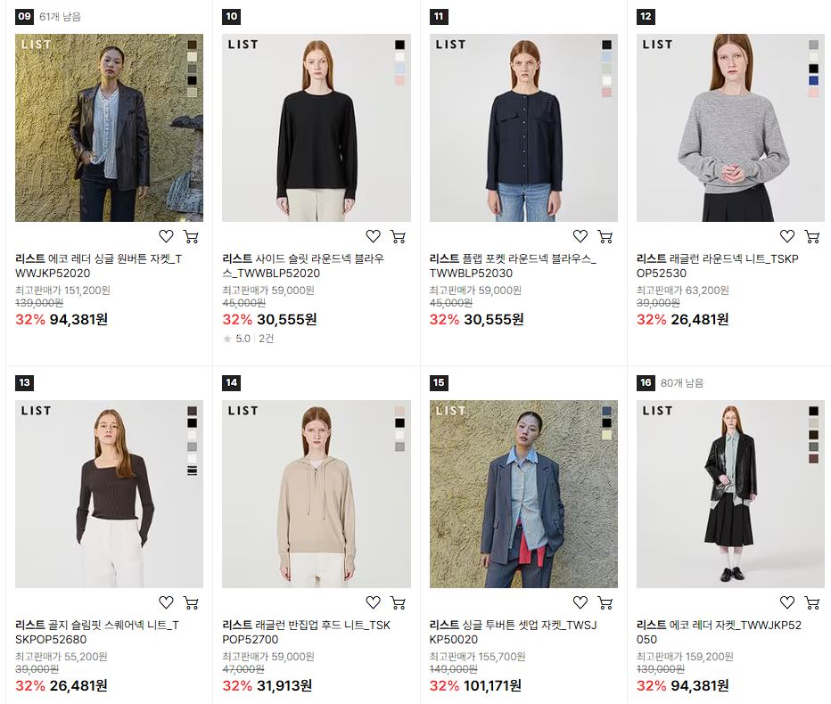 할인 품목 : 티셔츠, 자켓, 가디건 등