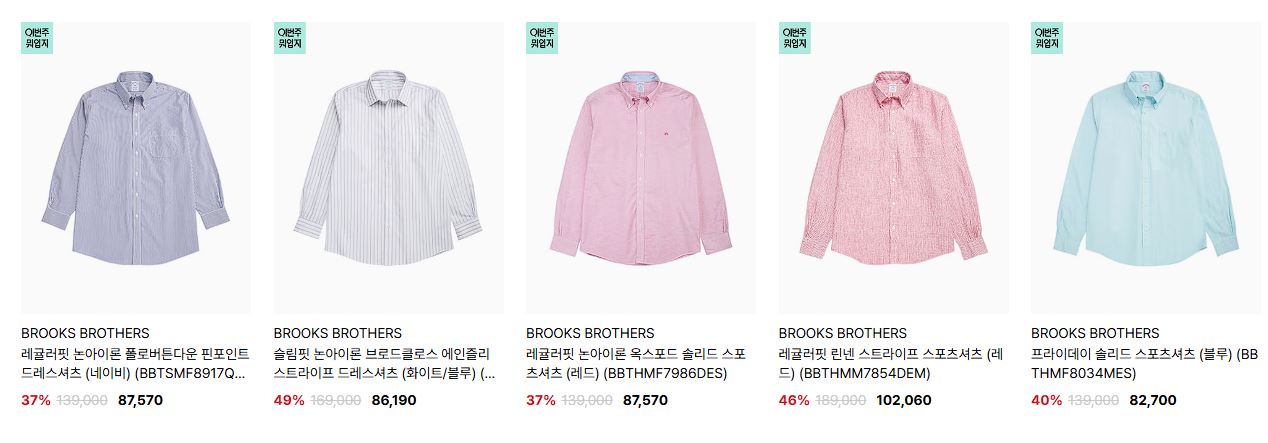 브룩스 브라더스 다양한 제품을 할인 판매하네요.