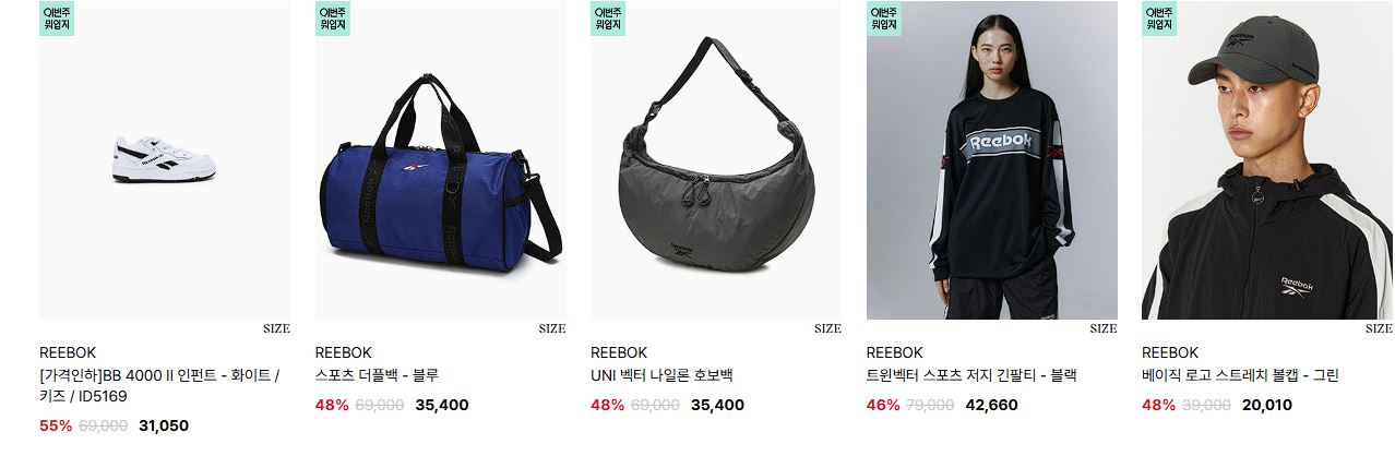 리복 다양한 제품을 할인 판매하네요.