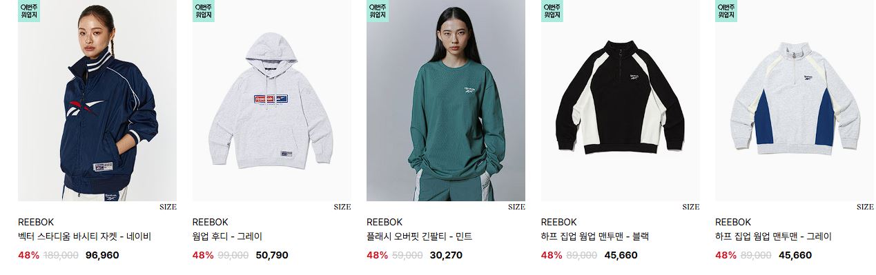 리복 다양한 제품을 할인 판매하네요.