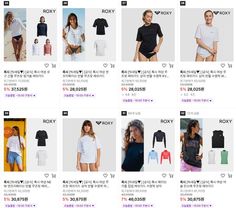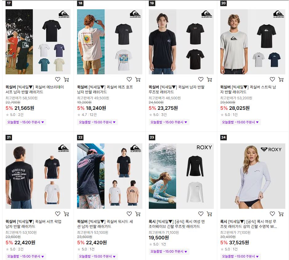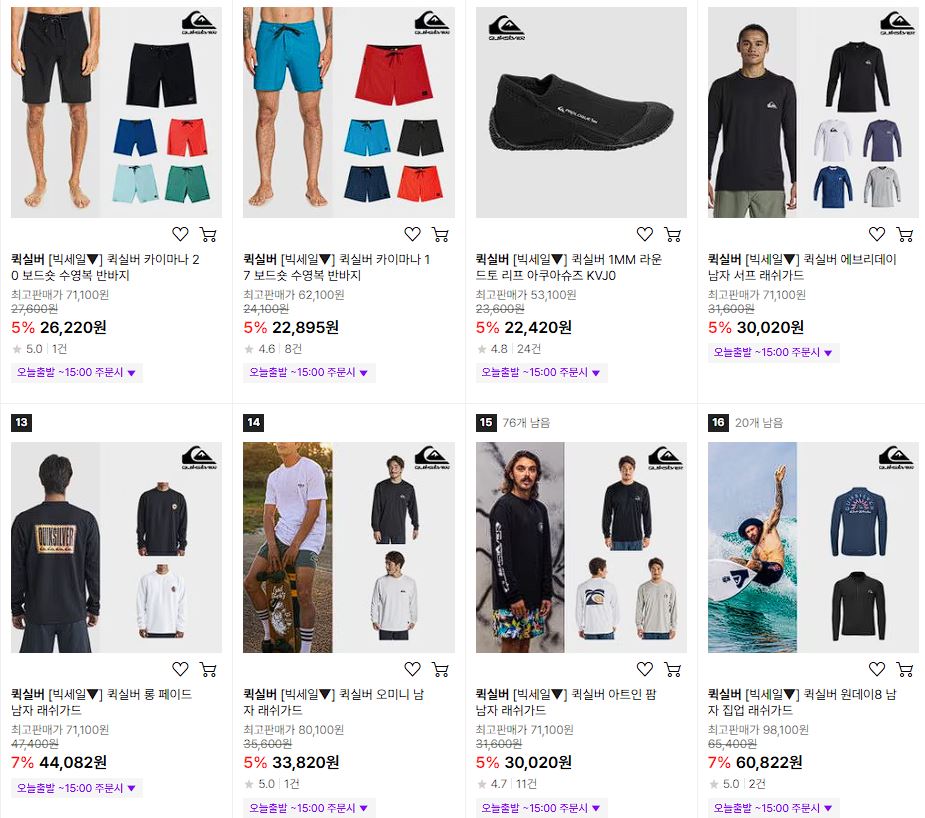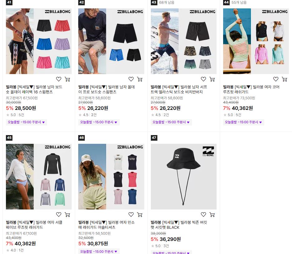 퀵실버/록시/빌라봉 다양한 제품을 할인 판매하네요.