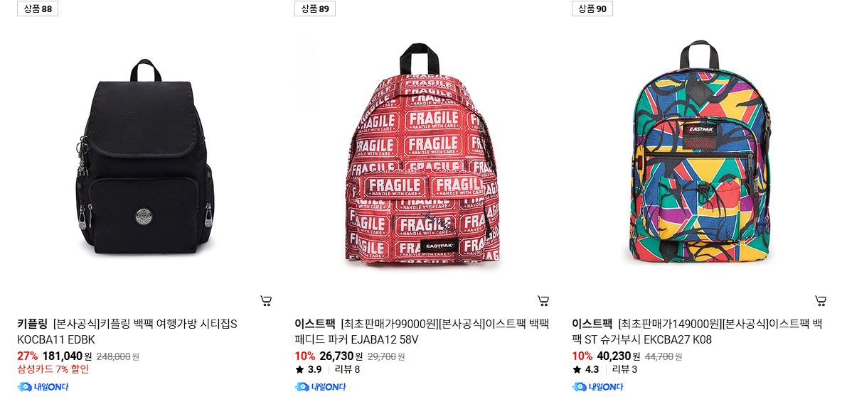 키플링/이스트팩 타임딜 정보 [링크]