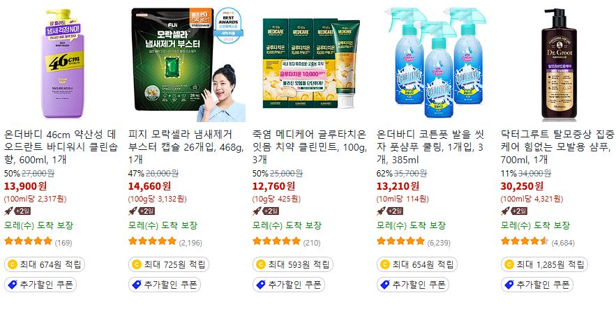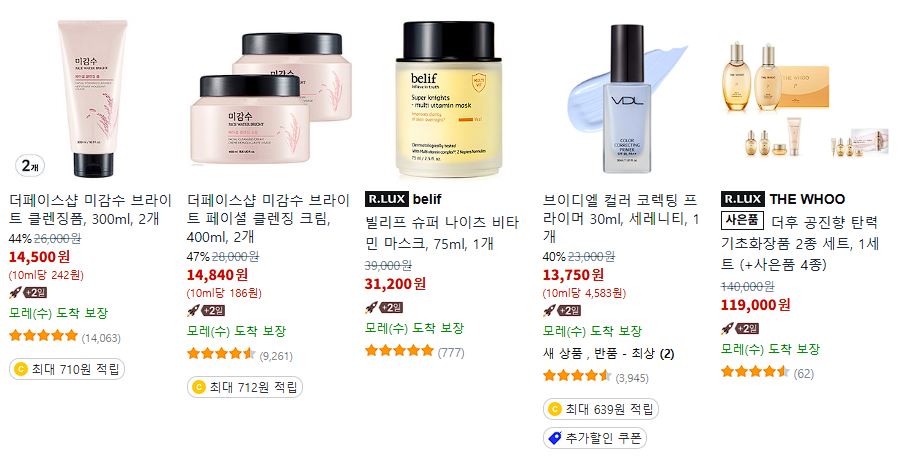 할인 품목 : 마스크시트, 클렌징젤, 샴푸 등