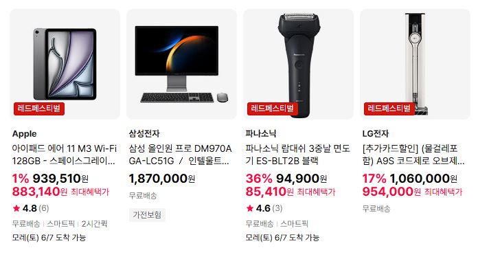 할인 품목 : 에어컨, TV, 커피머신 등
