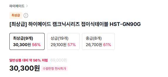 하이메이드 캠크닉시리즈 접이식테이블 전시상품 할인 정보 [링크]