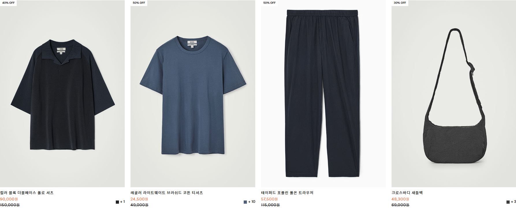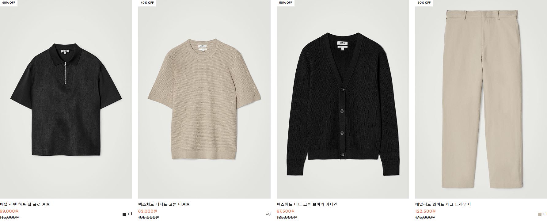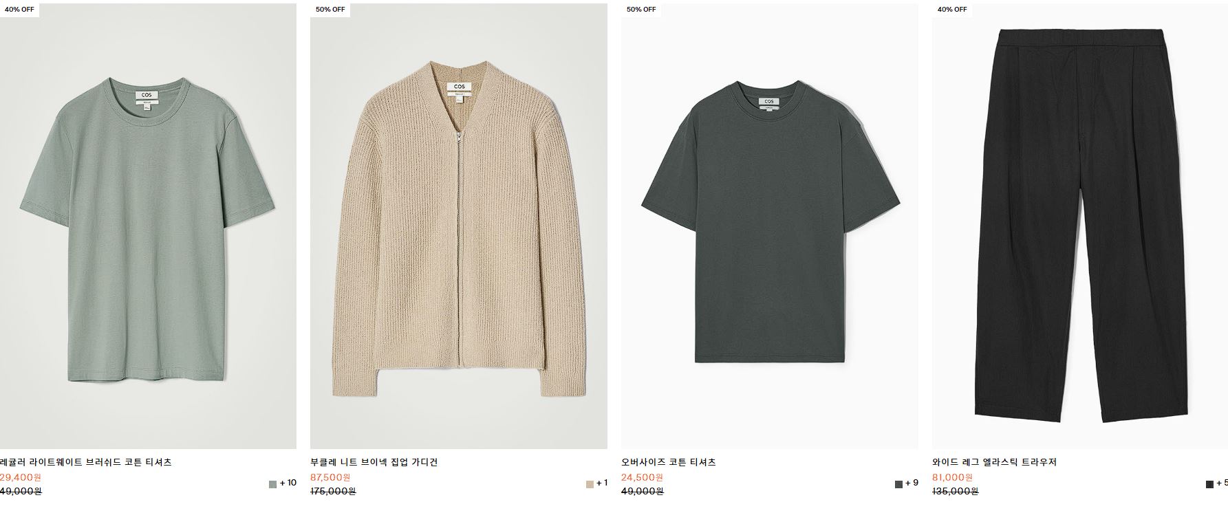 할인 품목 : 니트, 티셔츠, 가디건, 팬츠 등
