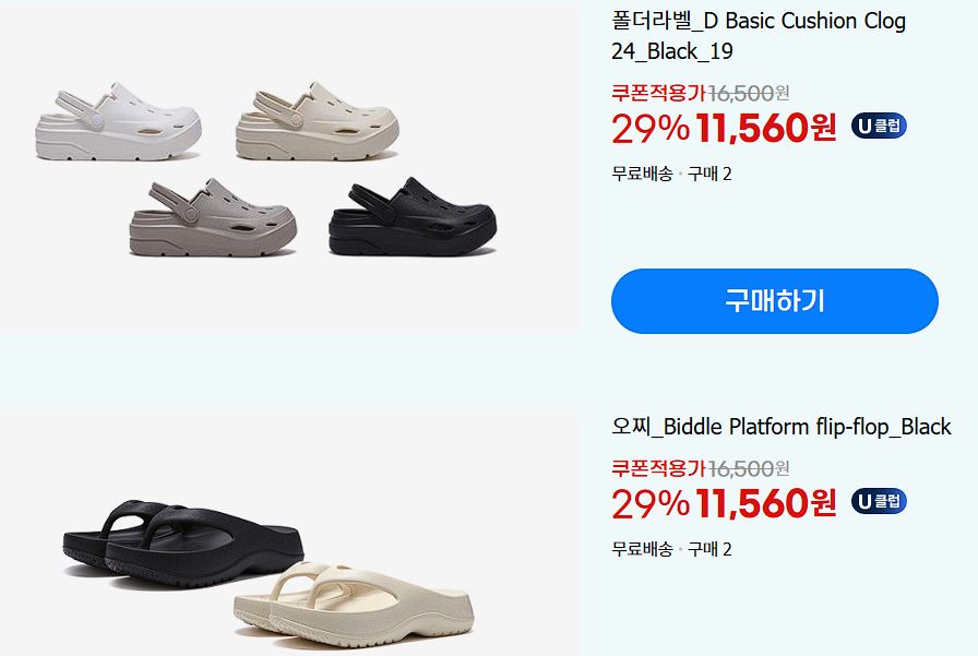 할인 품목 : 의류, 신발 등