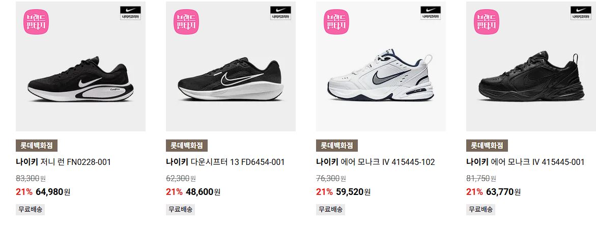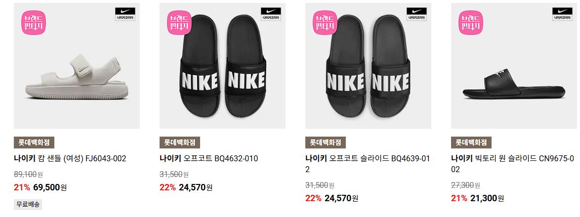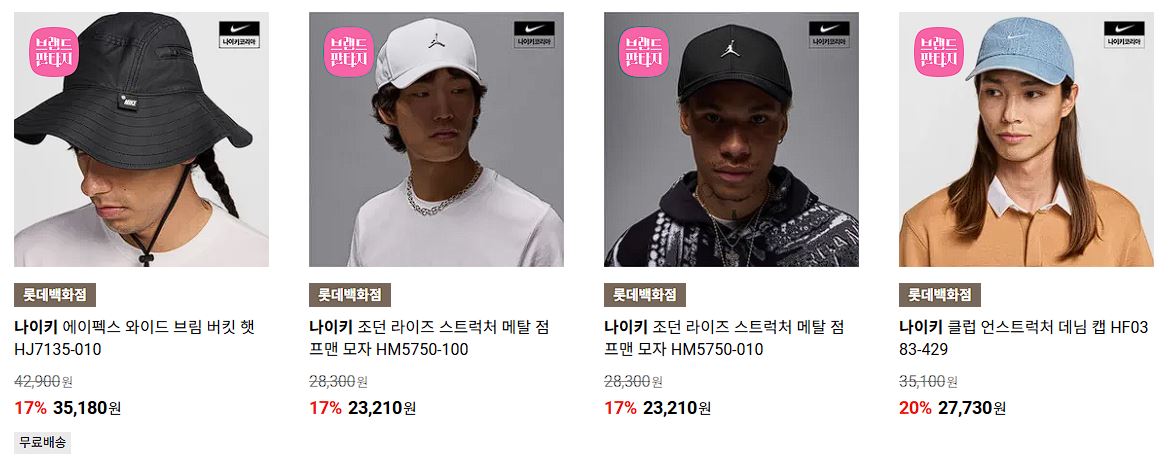 할인 품목 : 운동화, 의류, 가방, 모자 등