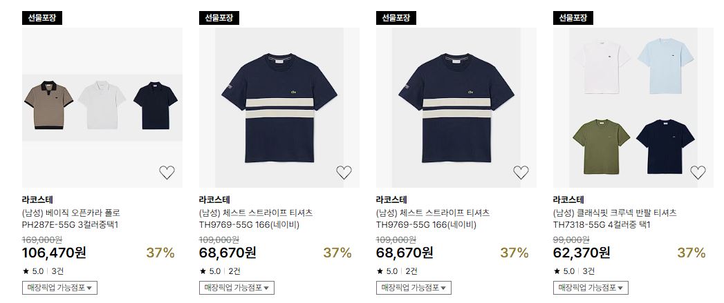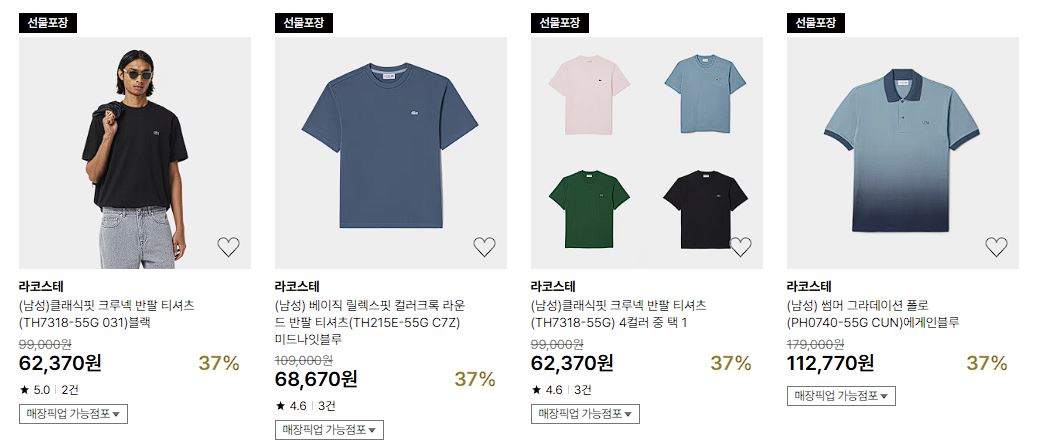 라코스테 다양한 제품을 할인 판매하네요.
