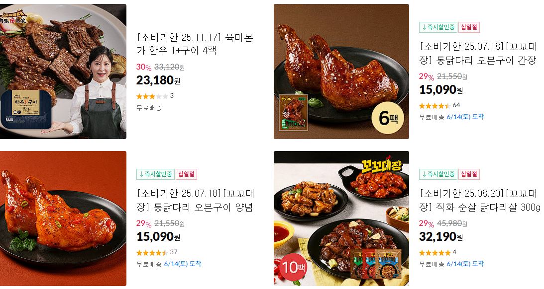 할인 품목 : 만두, 소갈비찜, 음료 등