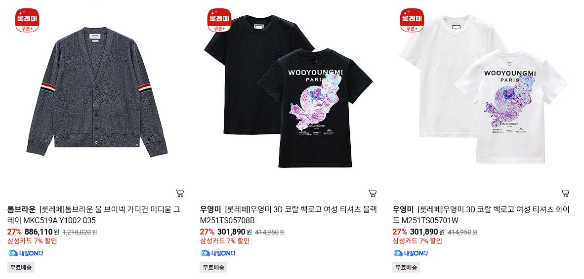 할인 품목 : 티셔츠, 셔츠, 가디건 등