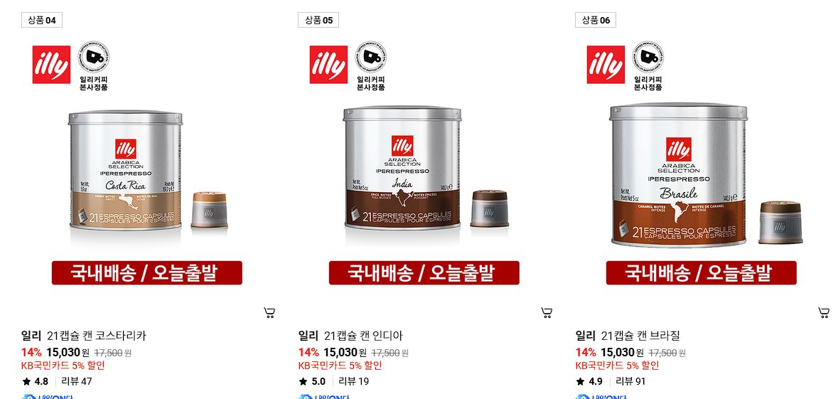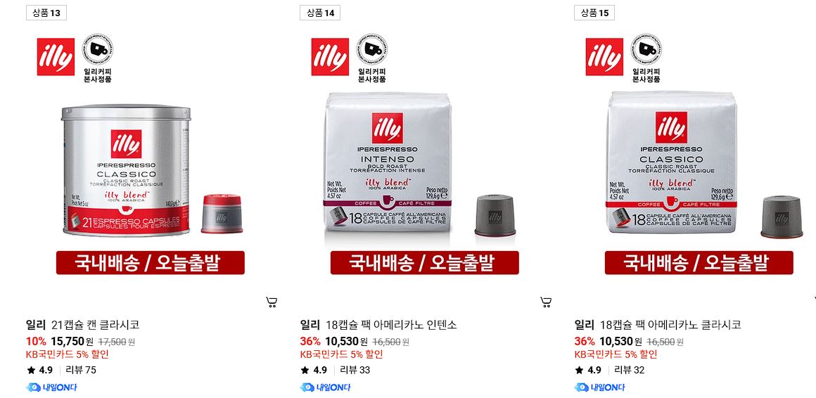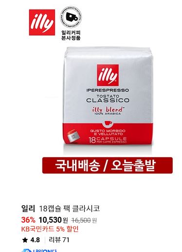 일리 커피 캡슐 다양한 제품을 할인 판매하네요.