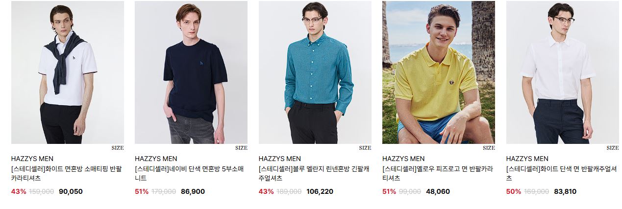 헤지스 다양한 제품을 할인 판매하네요.
