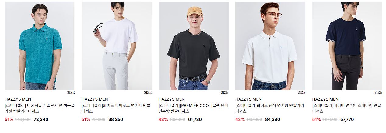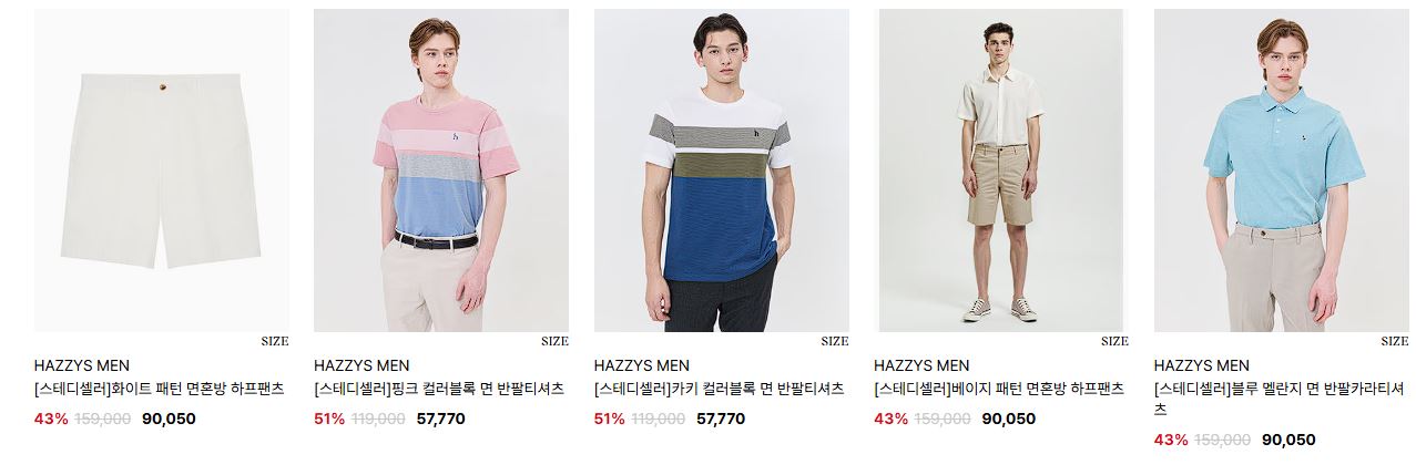 할인 품목 : 티셔츠, 팬츠 등