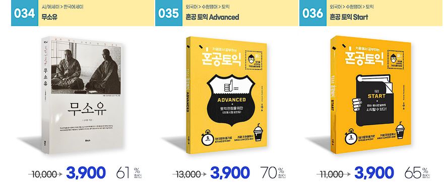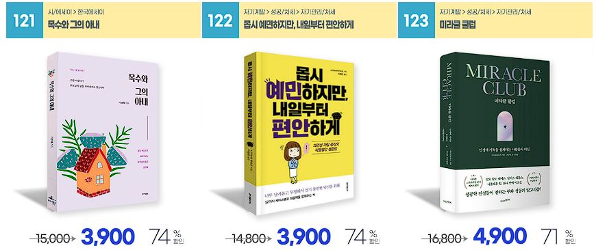 할인 품목 : 소설, 자기계발서, 에세이 등