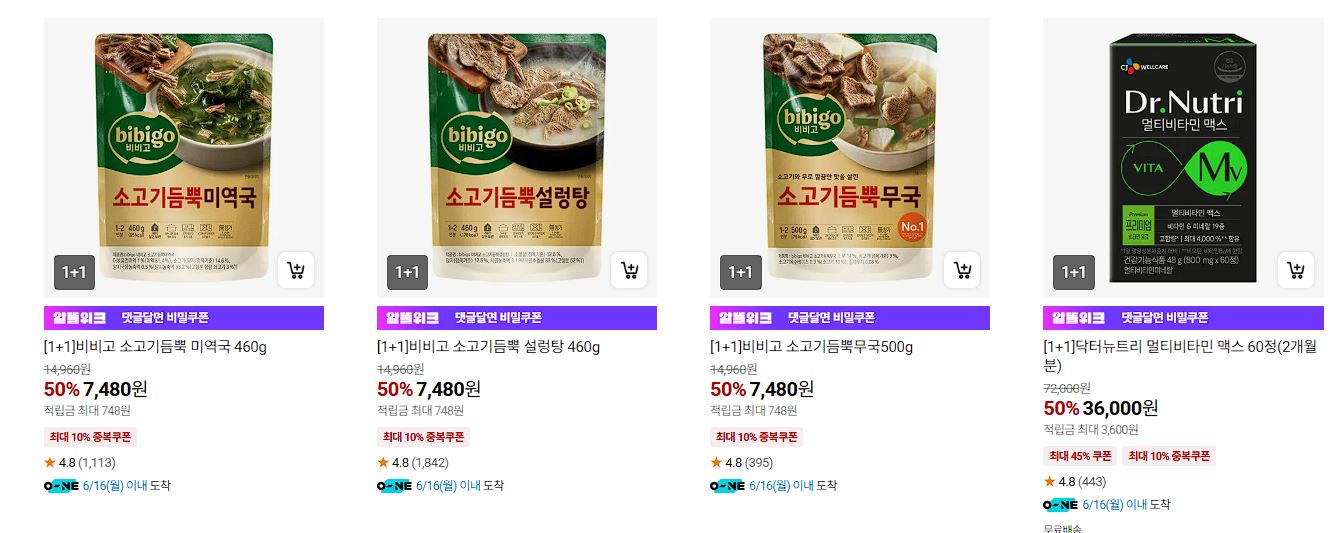 할인 품목 : 만두, 햇반, 소시지, 설렁탕 등