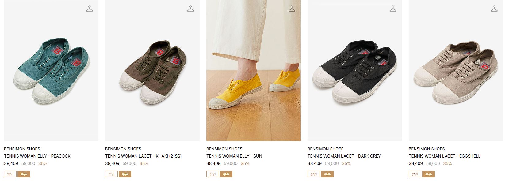 할인 품목 : 운동화, 티셔츠, 장화 등
