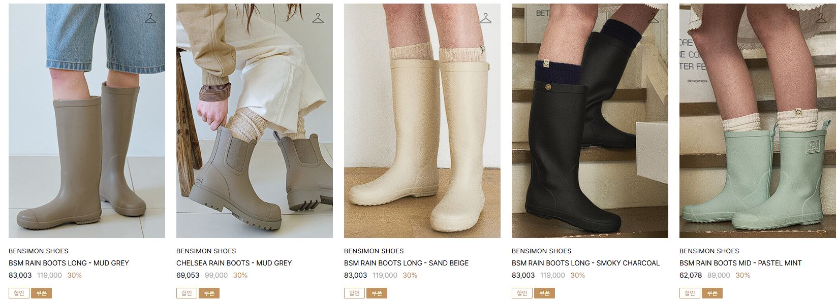 할인 품목 : 운동화, 티셔츠, 장화 등