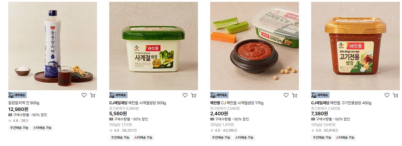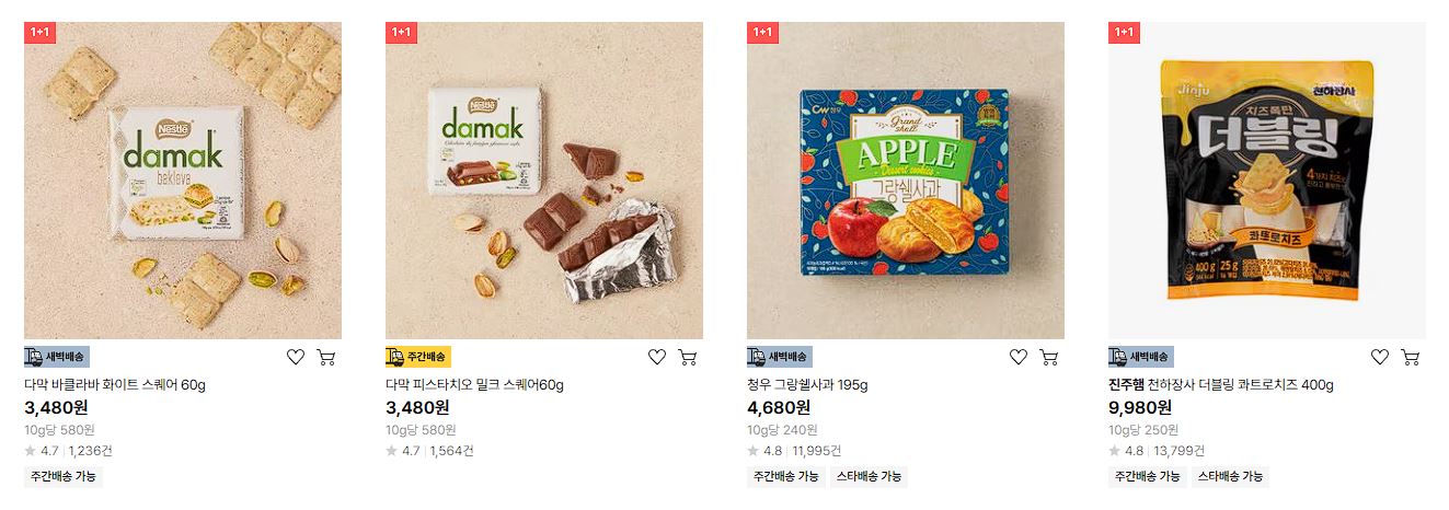 할인 품목 : 초콜렛, 양념소스, 햇반, 커리 등
