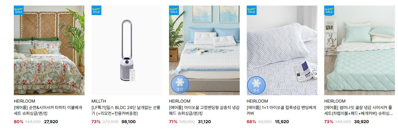 할인 품목 : 의류, 신발, 침구류 등