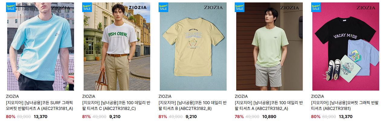 할인 품목 : 티셔츠, 셔츠, 팬츠 등