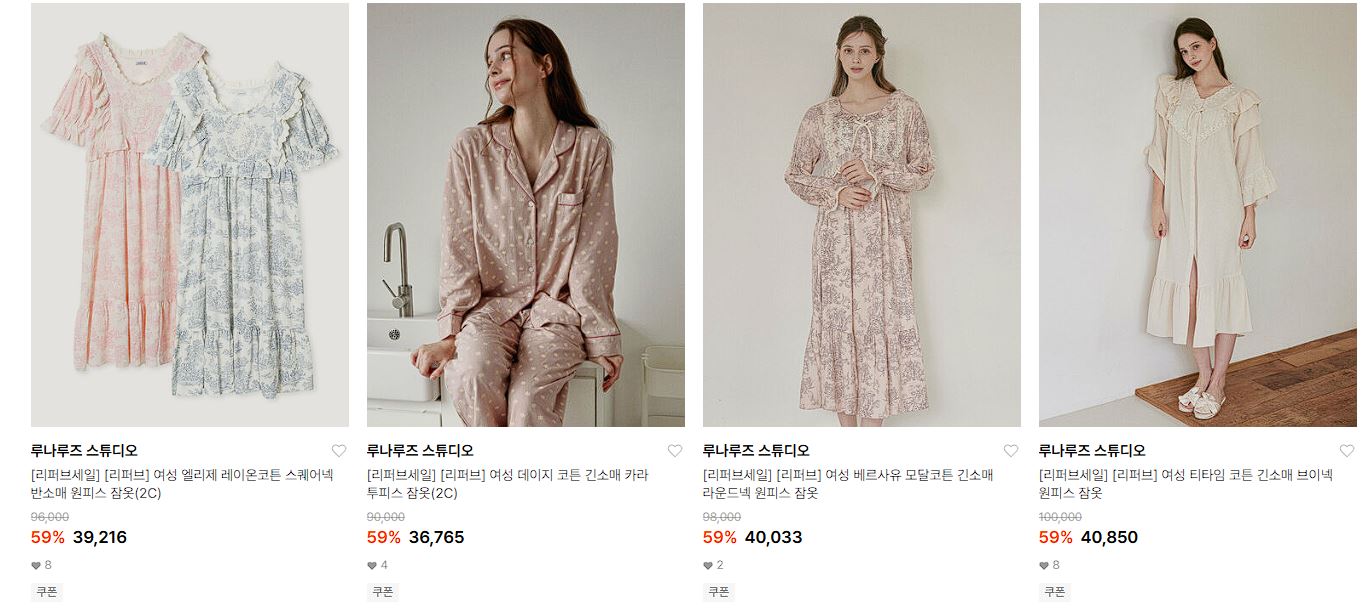 할인 품목 : 잠옷, 가운, 속옷 등