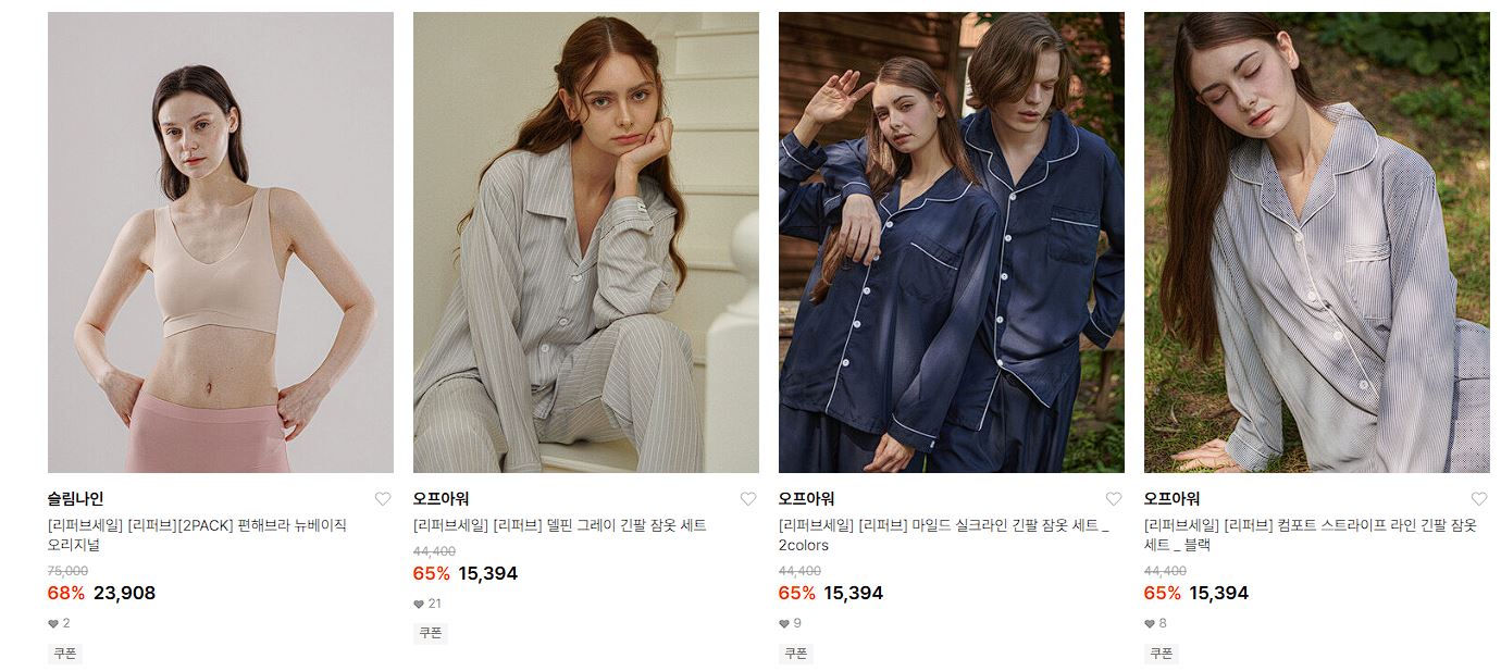 W컨셉 언더웨어 라운지웨어 리퍼브 특가 정보 포스팅입니다.