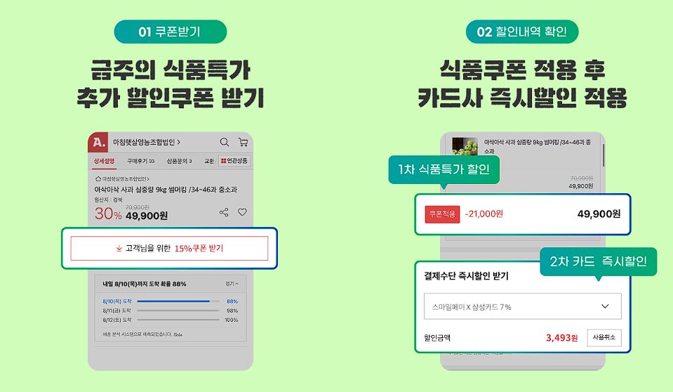 옥션 식품특가 15%쿠폰 + 카드 7% 즉시할인 정보 [링크]
