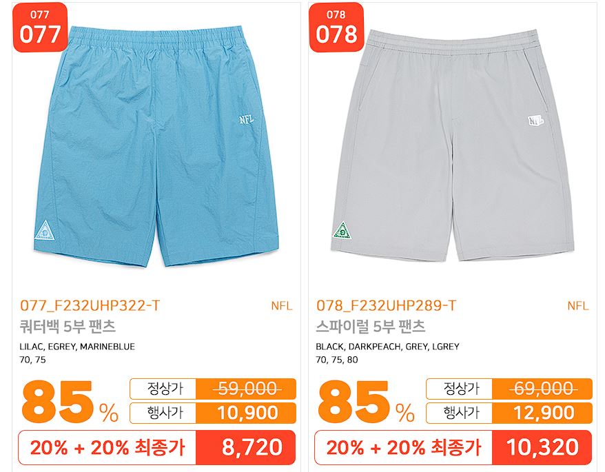 할인 품목 : 티셔츠, 팬츠, 홈웨어 등