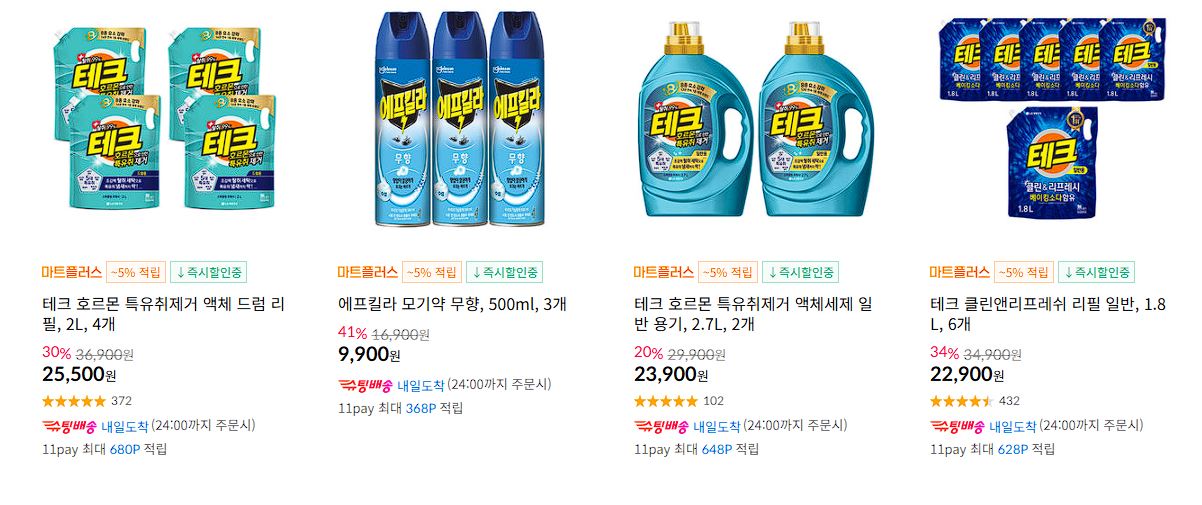 할인 품목 : 과자, 초콜렛, 세제, 샴푸 등