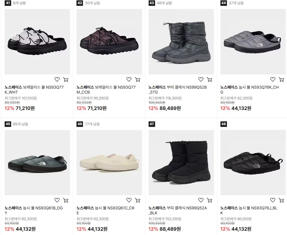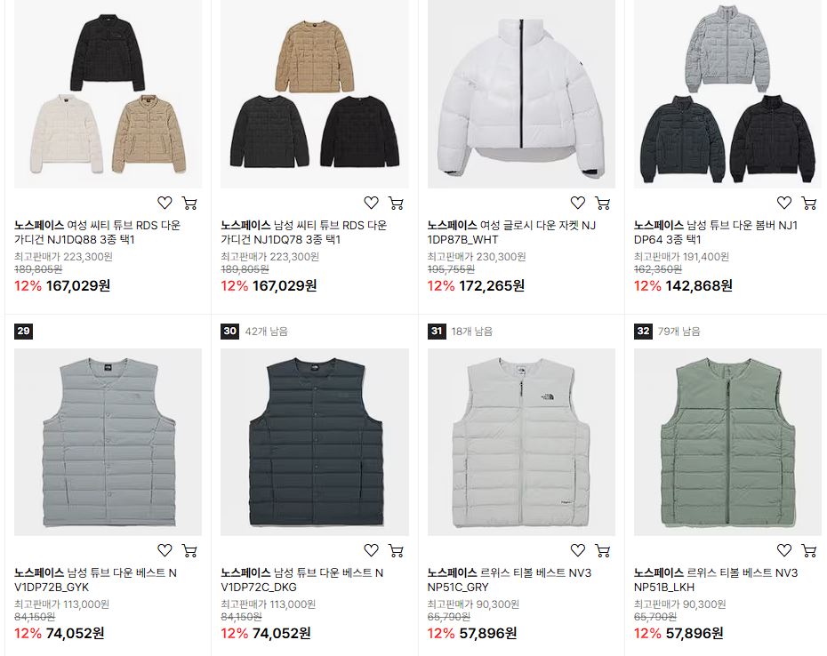 할인 품목 : 점퍼, 부츠, 패딩베스트 등