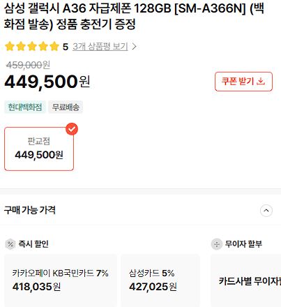 삼성 갤럭시 A36 자급제폰 128GB 블랙 할인 정보 [링크]