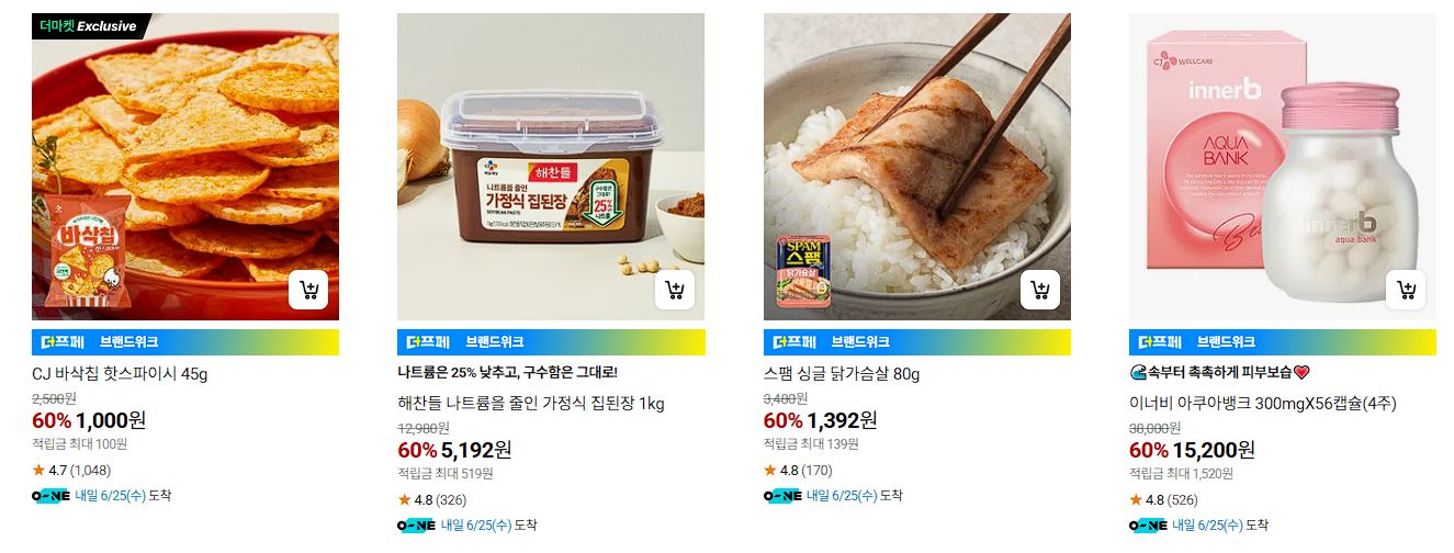 CJ더마켓 다양한 제품을 할인 판매하네요.