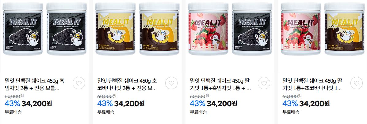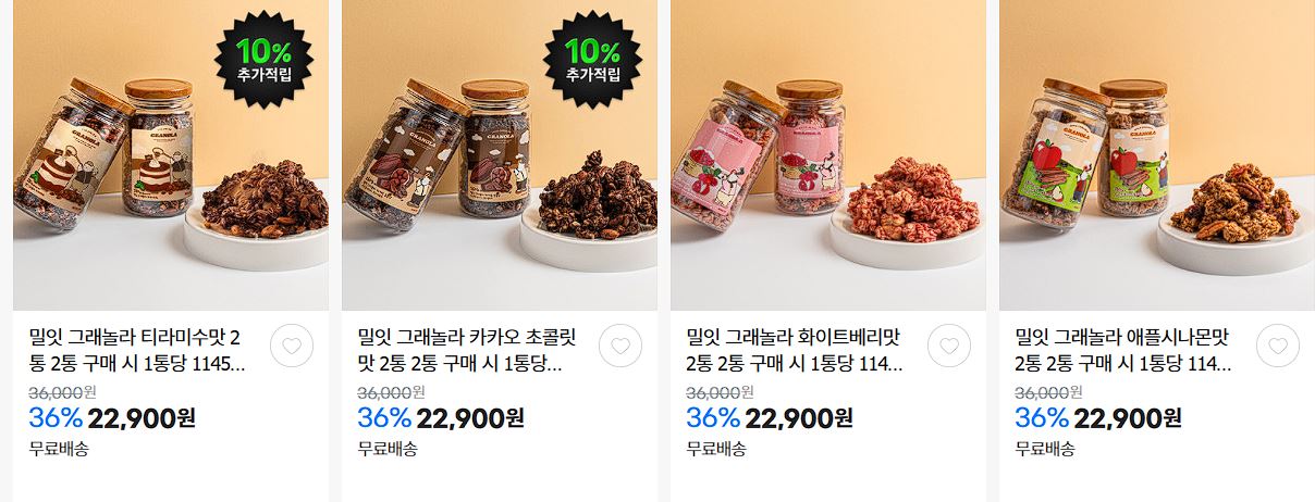 할인 품목 : 단백질 쉐이크, 그래놀라