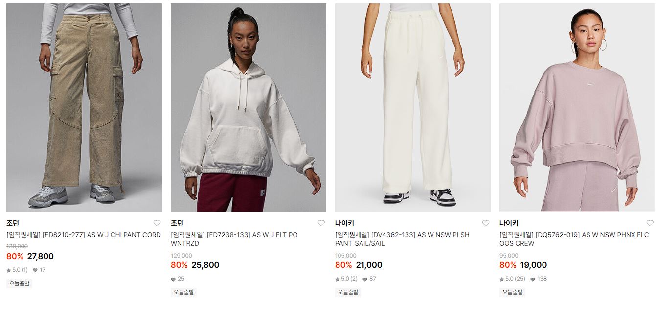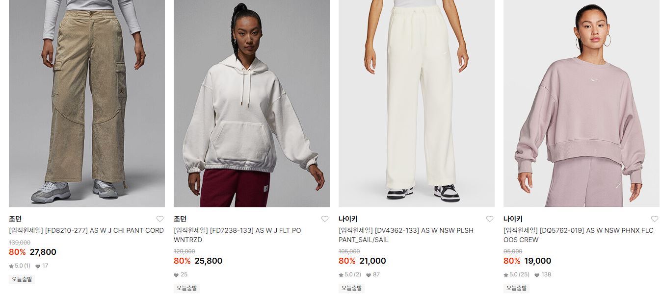할인 품목 : 운동화, 티셔츠, 팬츠 등