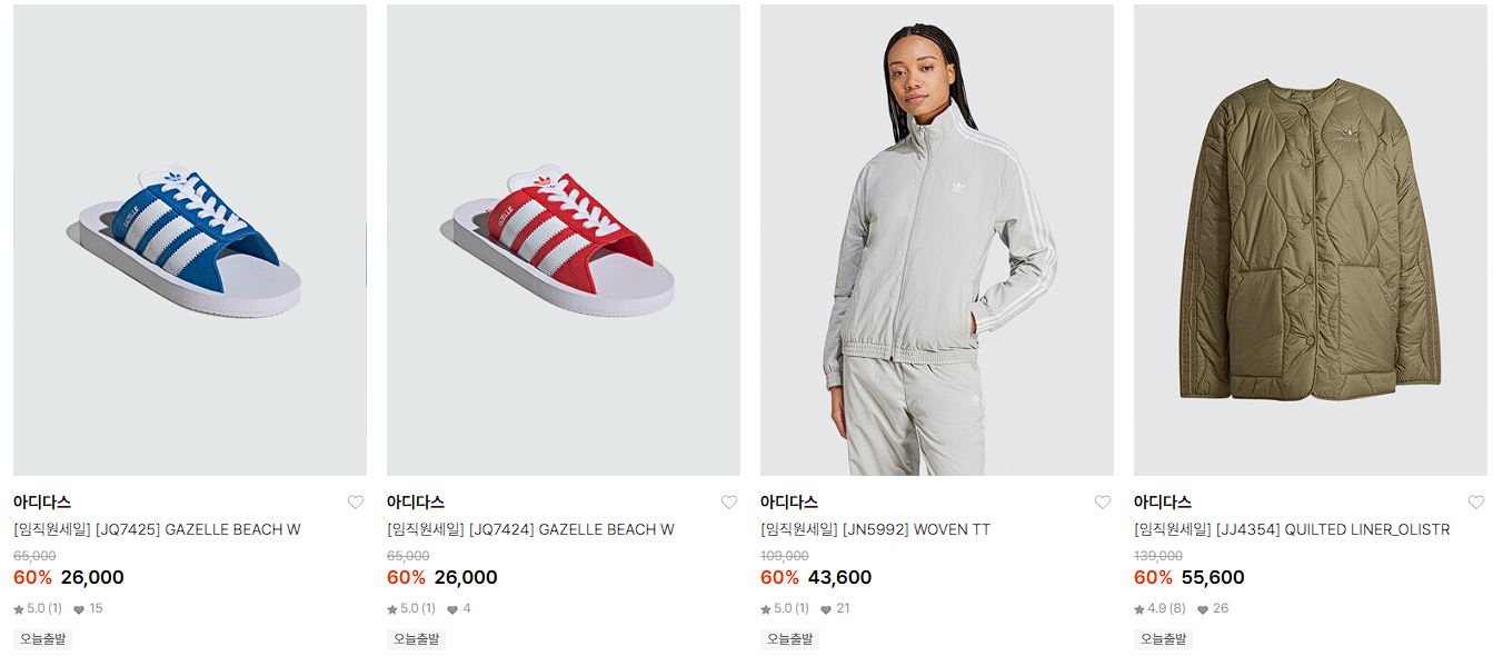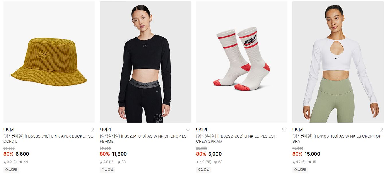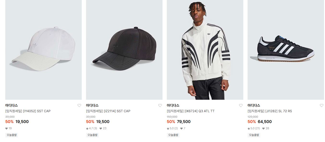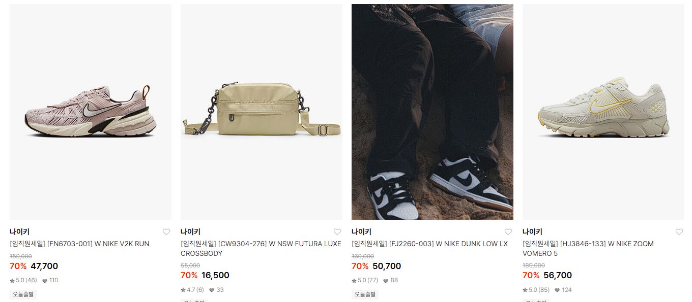 할인 품목 : 운동화, 티셔츠, 팬츠 등