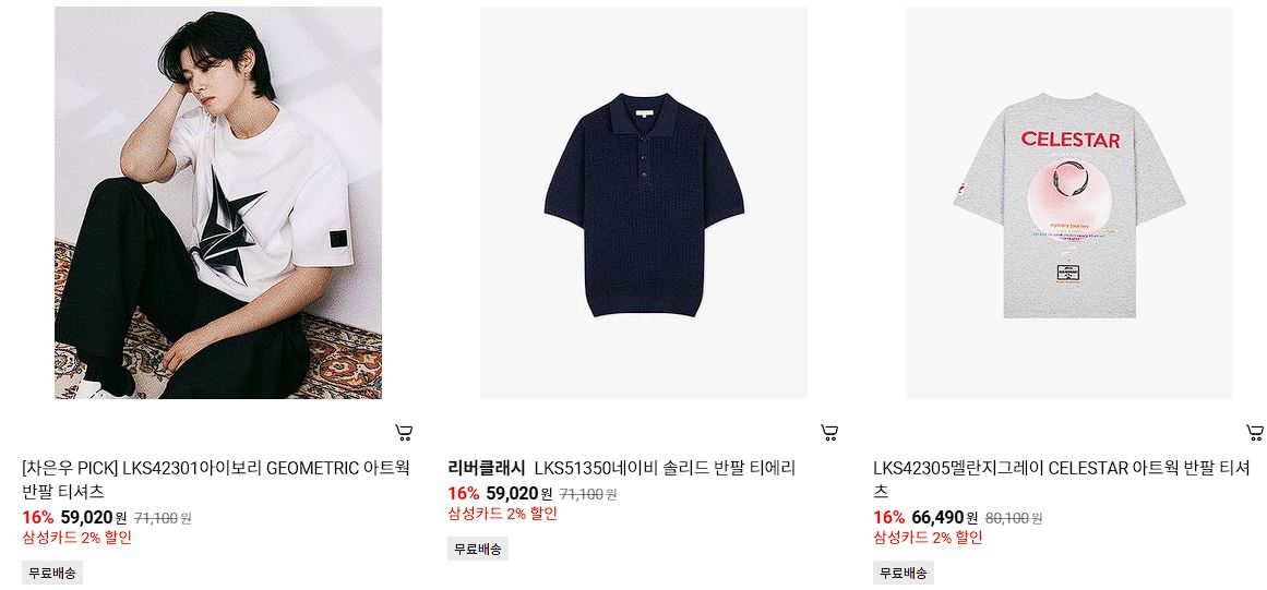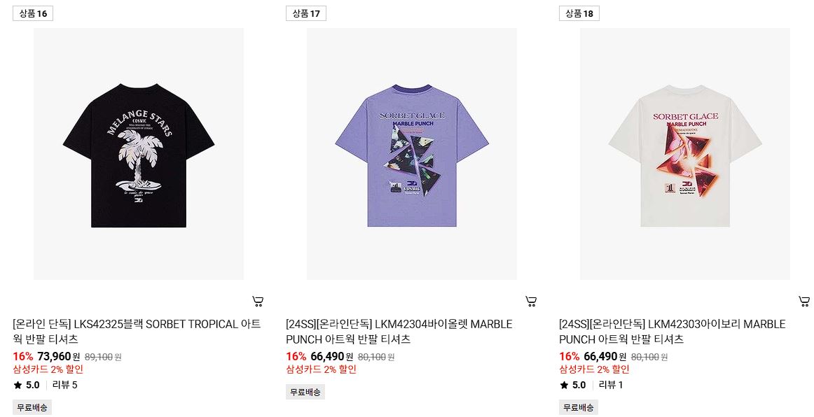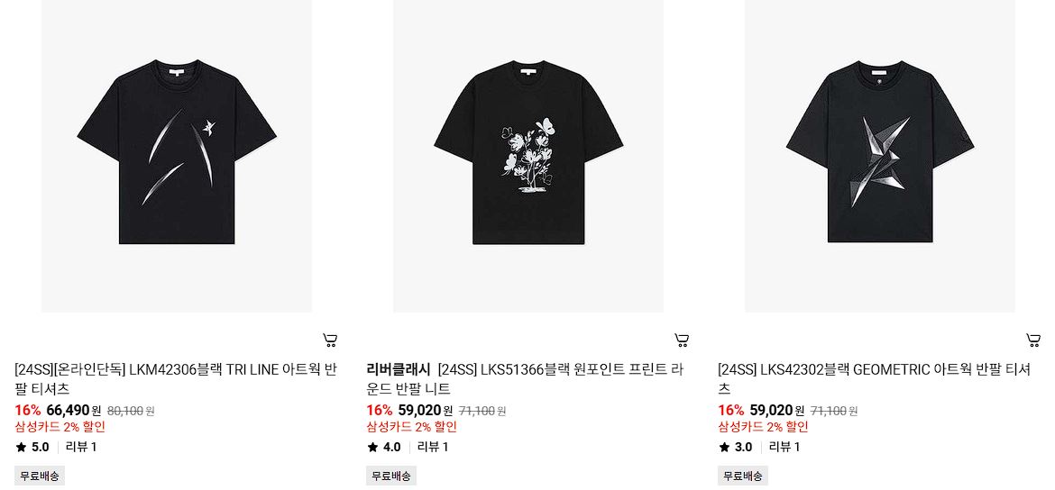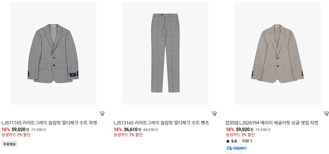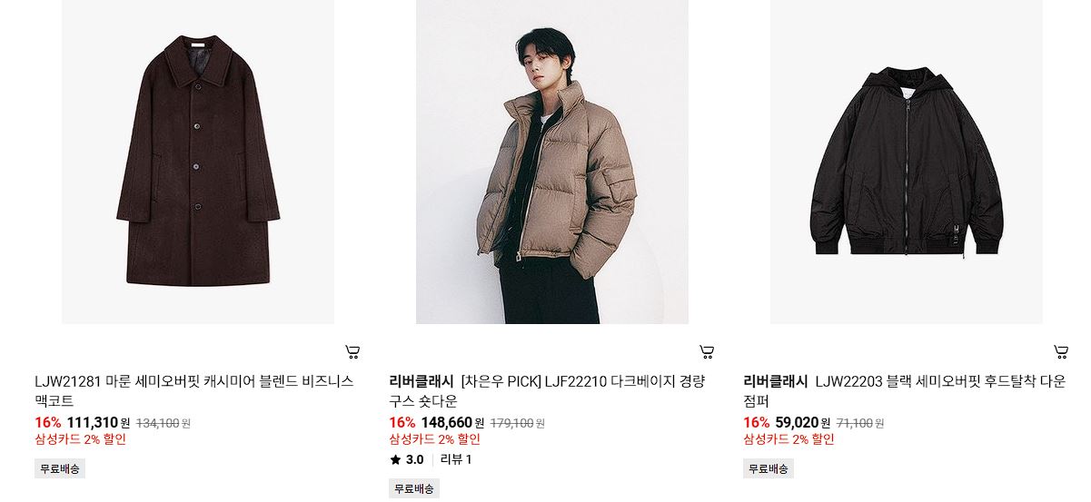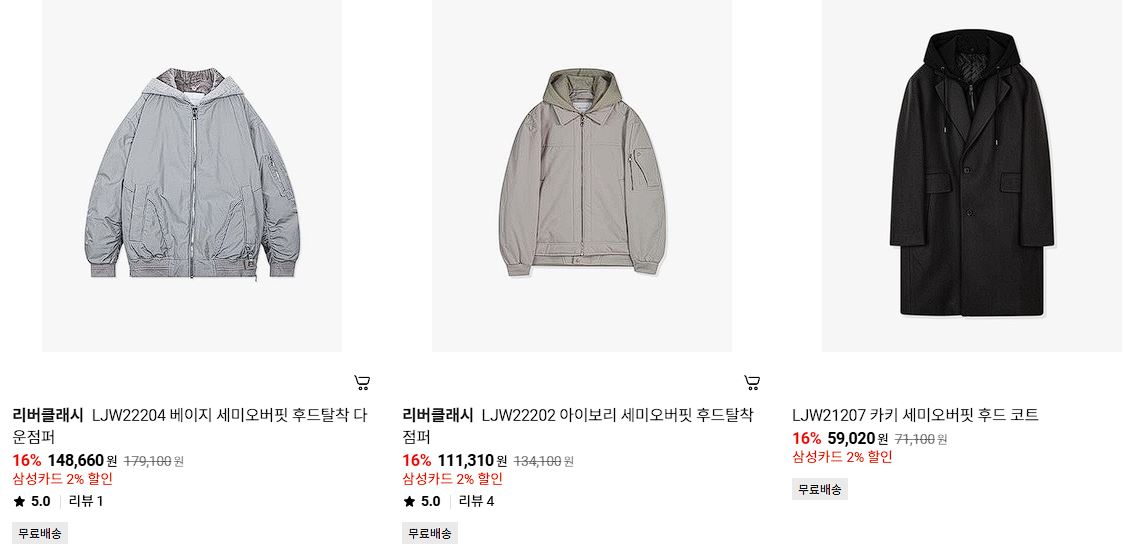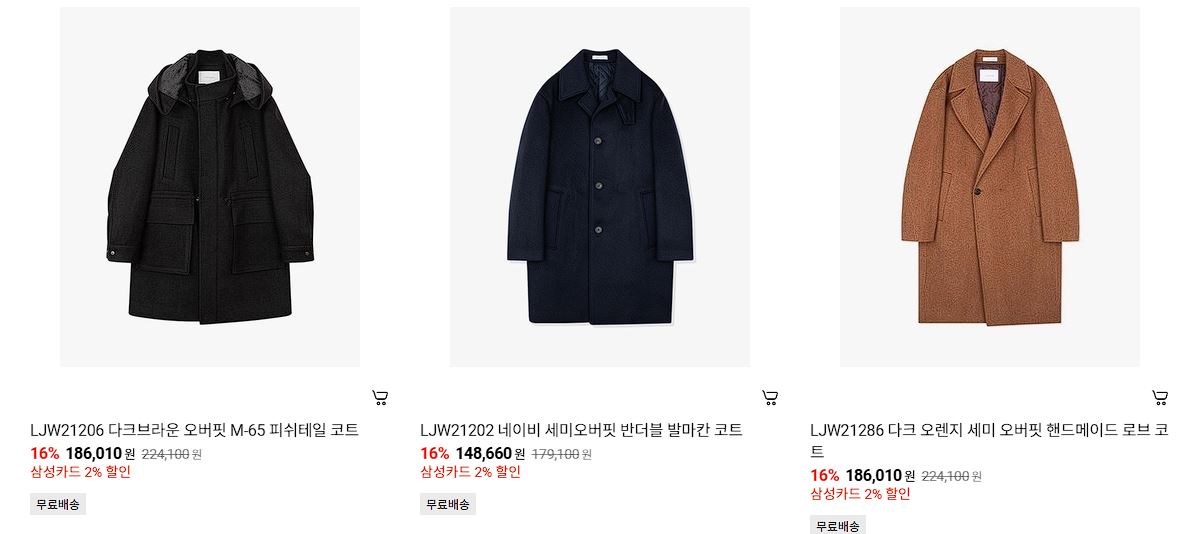 할인 품목 : 티셔츠, 코트, 자켓 등