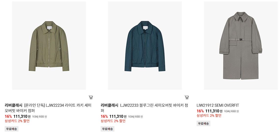 리버클래시 다양한 제품을 할인 판매하네요.