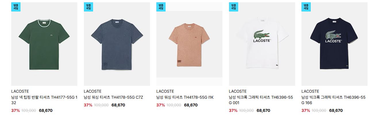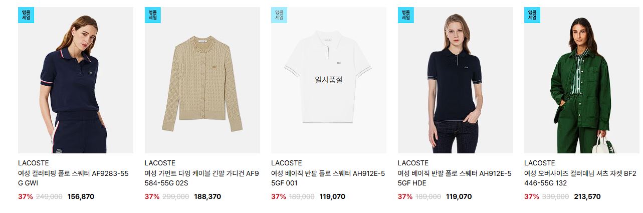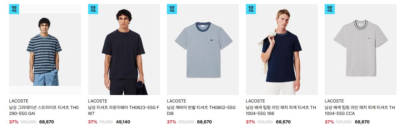 라코스테 다양한 제품을 할인 판매하네요.