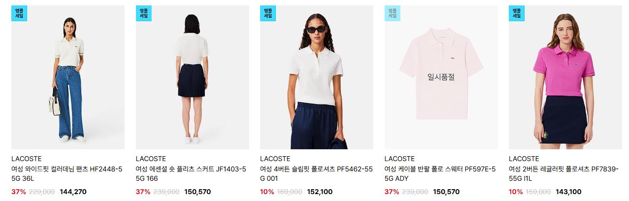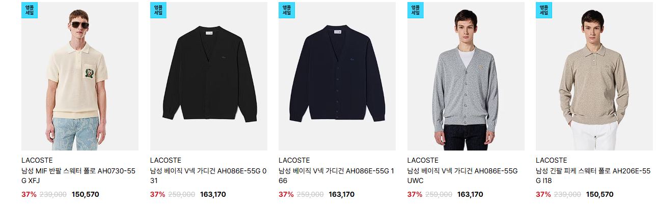 라코스테 다양한 제품을 할인 판매하네요.