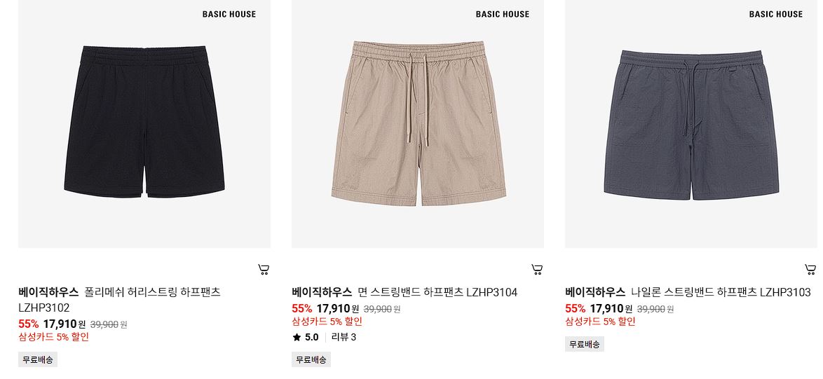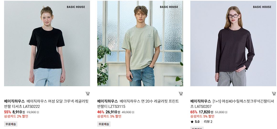 베이직하우스 다양한 제품을 할인 판매하네요.