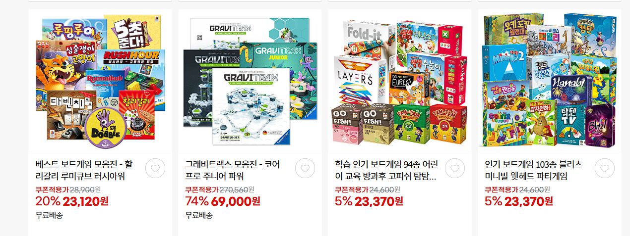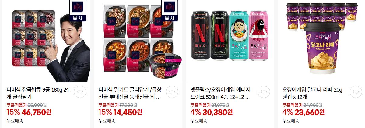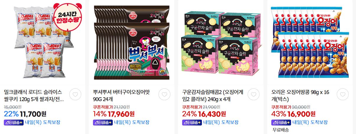 할인 품목 : 과자, 보드게임, 오징어 구이 등