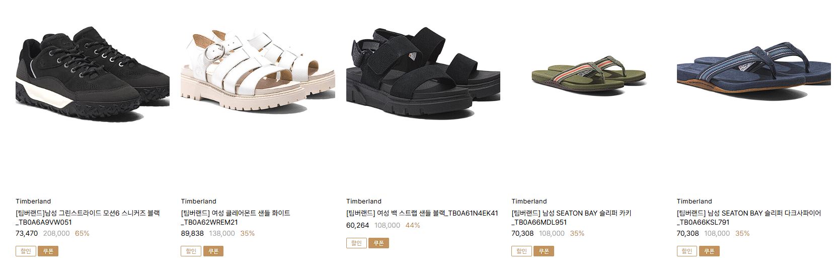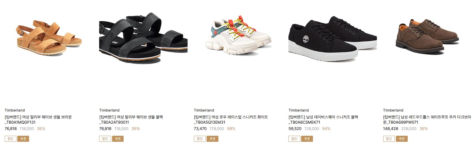 팀버랜드 다양한 제품을 할인 판매하네요.