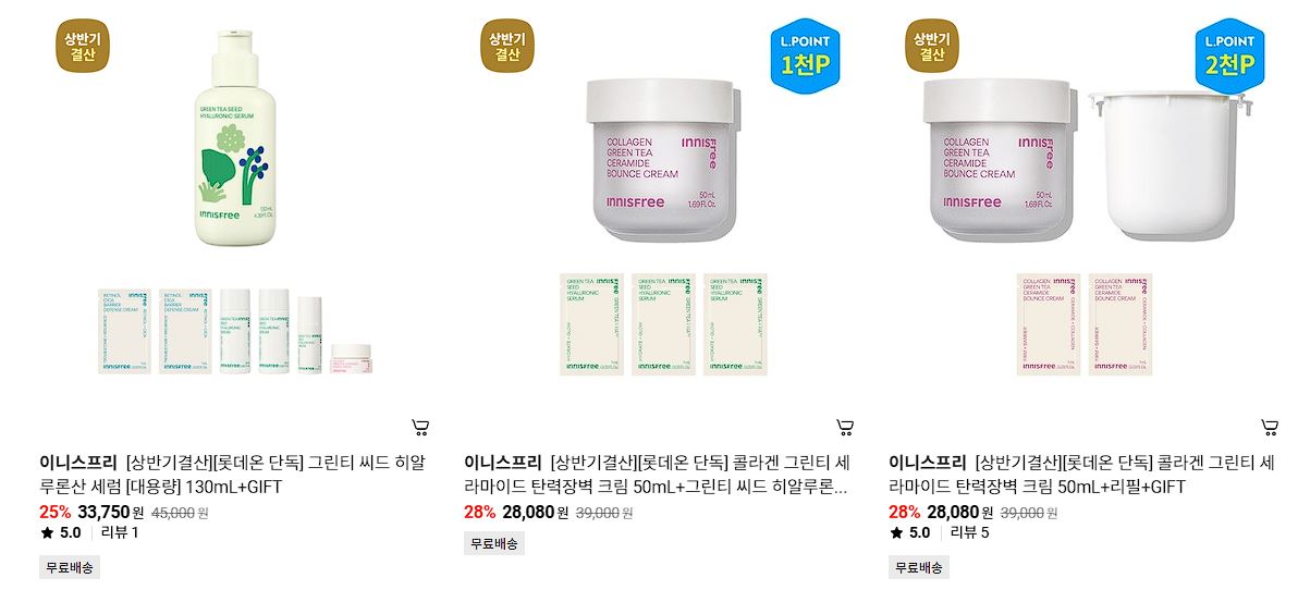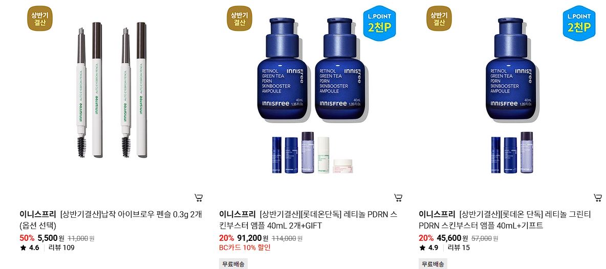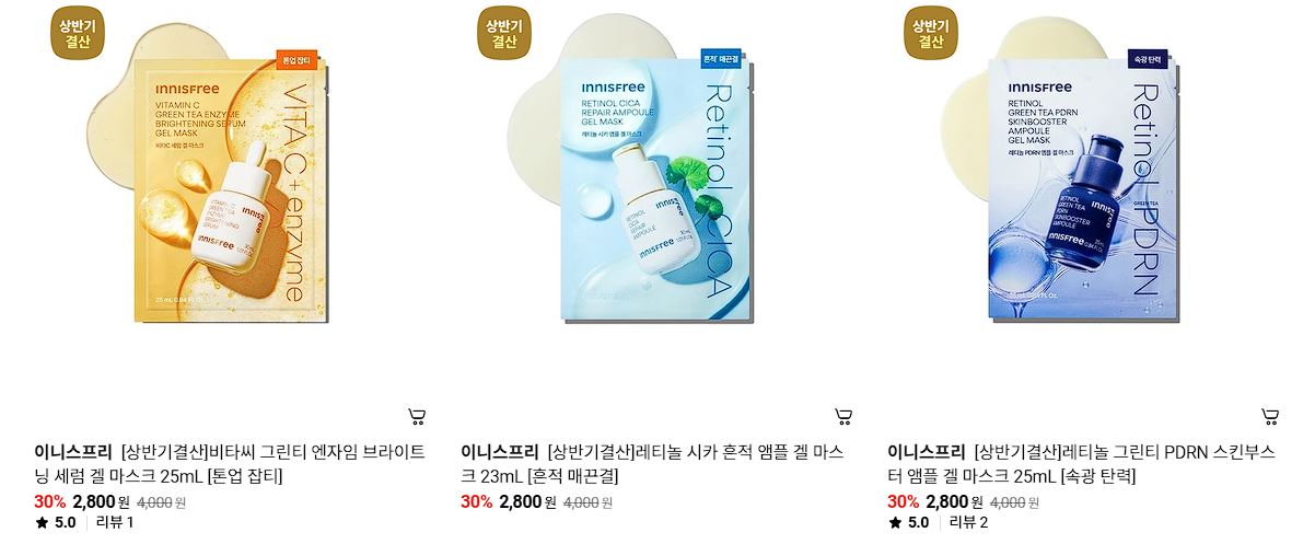 할인 품목 : 클렌징 폼, 앰플, 마스크팩 등