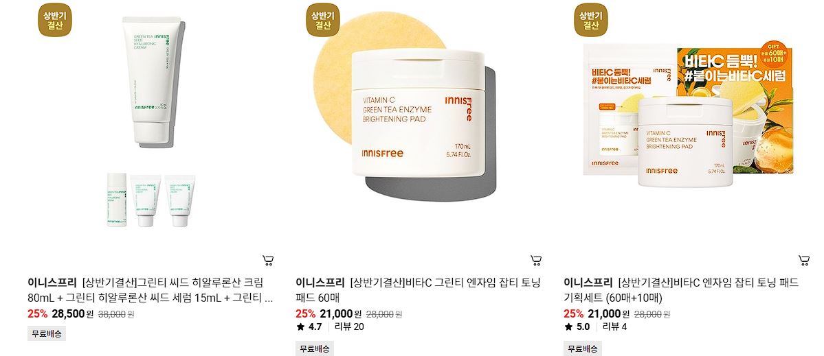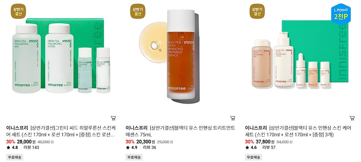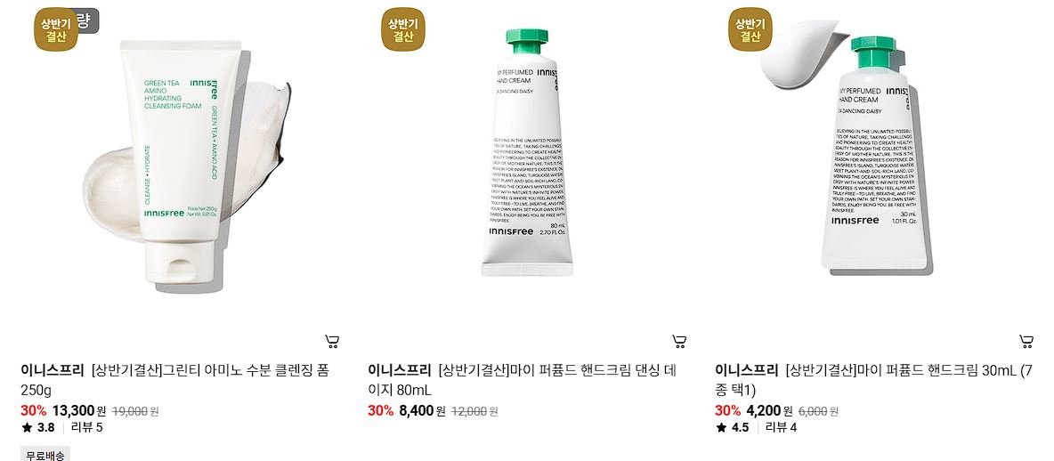 이니스프리 다양한 제품을 할인 판매하네요.