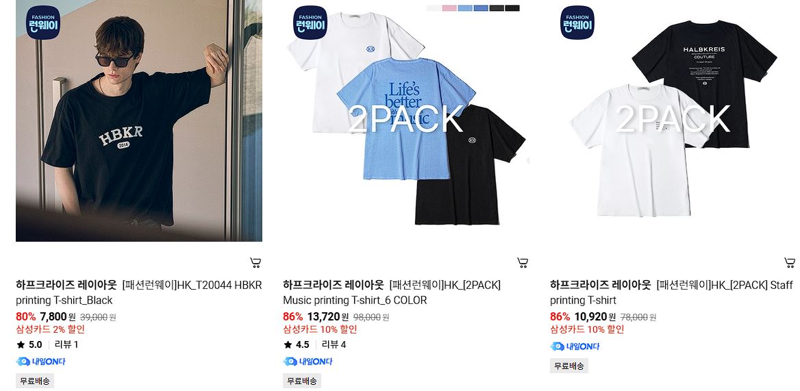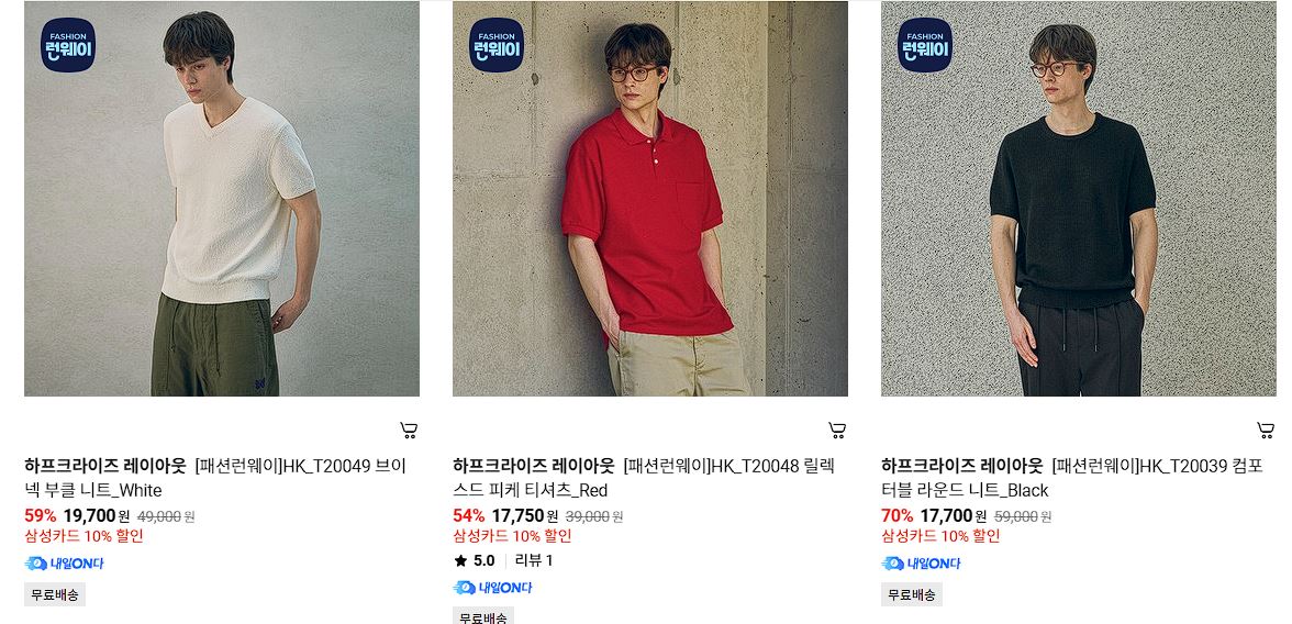 하프크라이즈 레이아웃 다양한 제품을 할인 판매하네요.