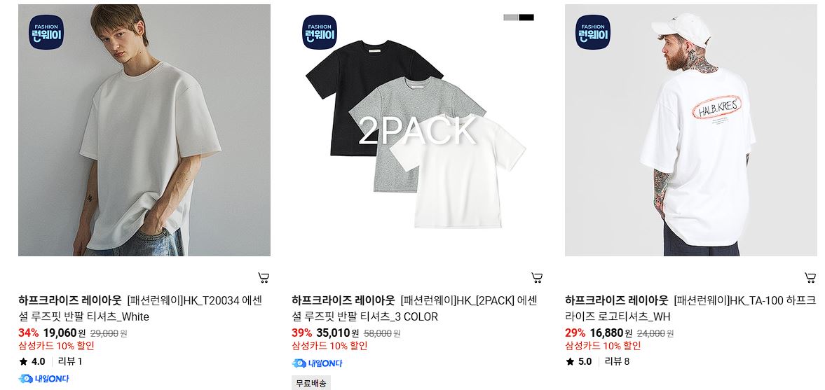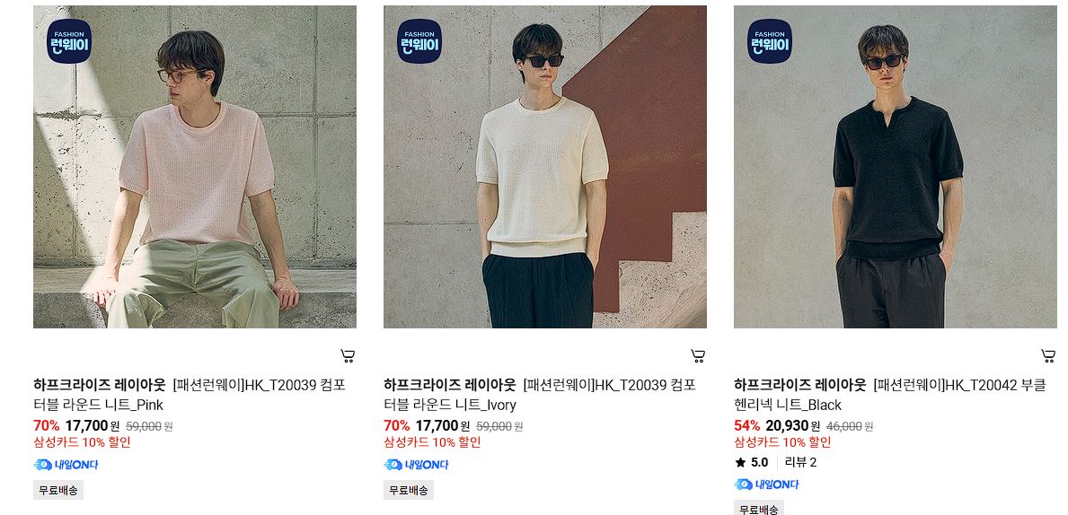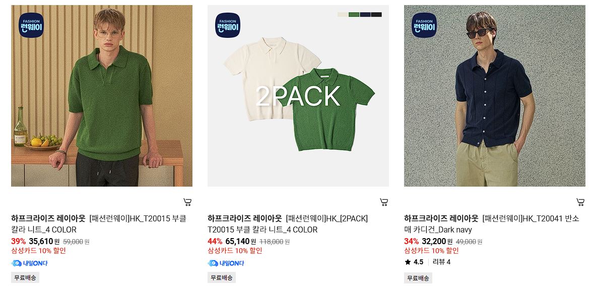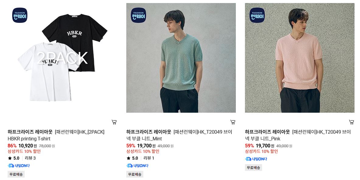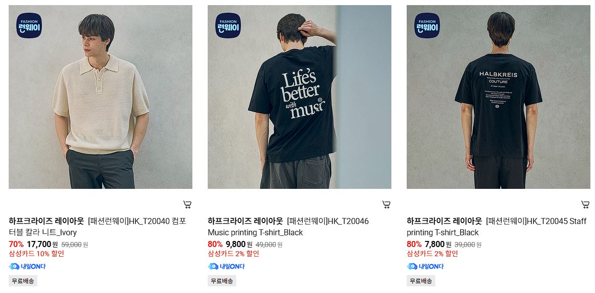 하프크라이즈 레이아웃 다양한 제품을 할인 판매하네요.